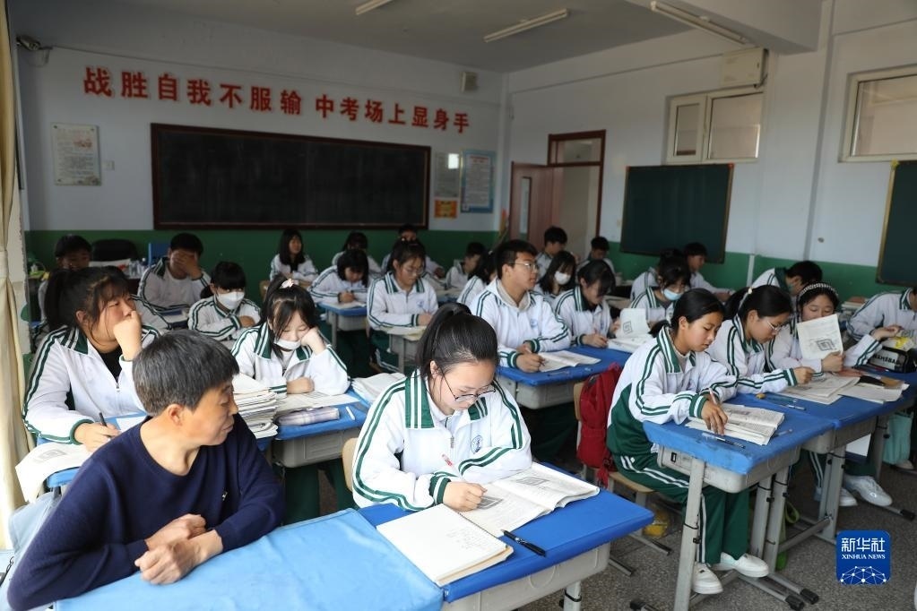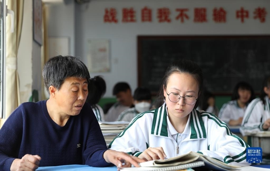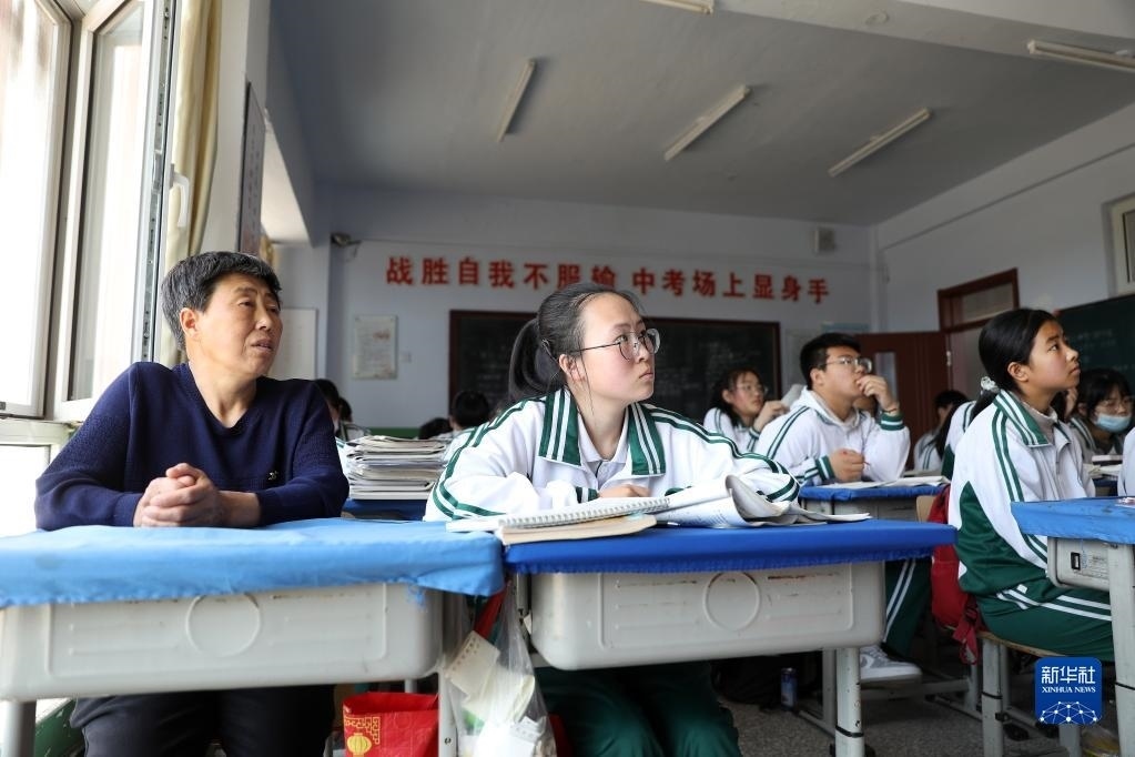 張連琴(左下)和女兒李昕偉在教室內(nèi)聽課(5月8日攝)。   新華社記者 姚劍鋒 攝