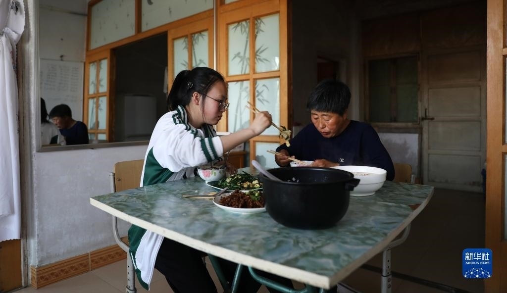 晚餐中的李昕偉為媽媽夾菜(5月7日攝)。   新華社記者 姚劍鋒 攝