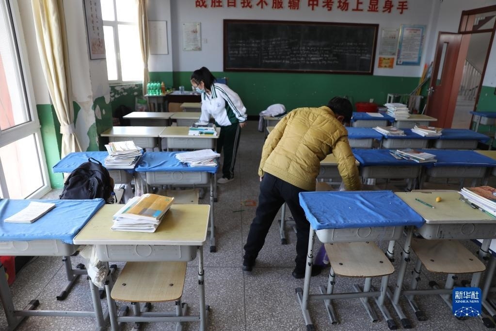 張連琴(左一)和女兒李昕偉在教室內(nèi)聽課(5月8日攝)。   新華社記者 姚劍鋒 攝