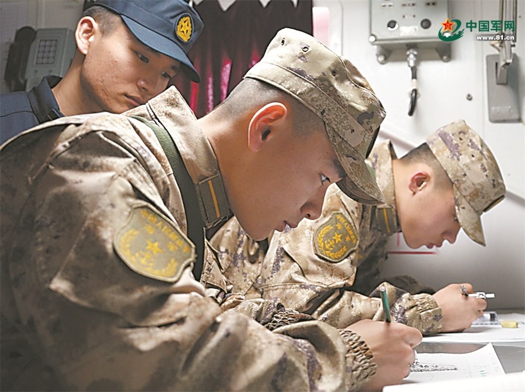 在海上訓(xùn)練中,學(xué)員與艦員一同操艦、一同值更,除進(jìn)行艦艇機(jī)動(dòng)繪算、指定錨位拋錨等日常航??颇坑?xùn)練外,還參加了主炮對(duì)海射擊、導(dǎo)彈搜索與攻擊、對(duì)潛搜索與攻擊等戰(zhàn)斗航海科目訓(xùn)練,將理論知識(shí)轉(zhuǎn)化為實(shí)戰(zhàn)能力,為畢業(yè)后崗位任職打下基礎(chǔ)。