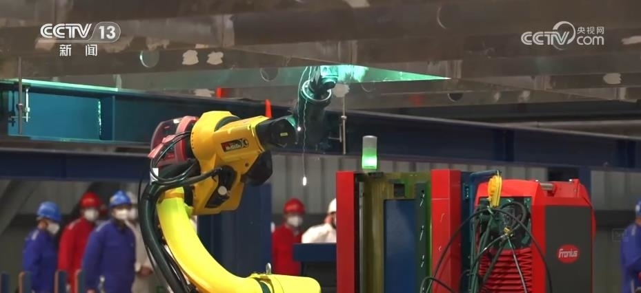 記者來(lái)到這個(gè)剛剛建成不久的智能化造船車(chē)間,一臺(tái)臺(tái)焊接機(jī)器人,正在自主完成作業(yè)。