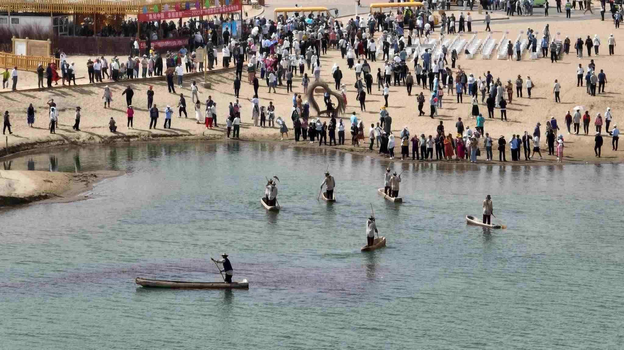 2023年5月19日是第13個“中國旅游日”。隨著當(dāng)天啟動的新疆維吾爾自治區(qū)2023年“5·19中國旅游日”各項旅游促銷活動,尉犁縣羅布人村寨一片歡騰,迎來了入夏首個旅游高峰。視覺中國