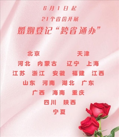 ·2023年6月1日起,21個省份婚姻登記可“跨省通辦”。