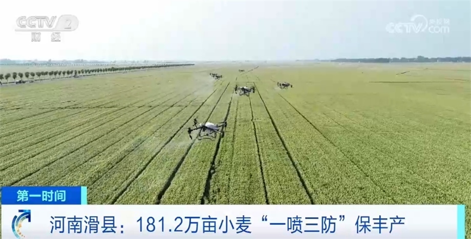 在河南滑縣,181.2萬畝小麥已經(jīng)進(jìn)入到中后期病蟲害防治的重要階段,當(dāng)?shù)鼗I措資金1600余萬元,通過“統(tǒng)防統(tǒng)治+群防群治”,引導(dǎo)農(nóng)民開展小麥“一噴三防”,這是確保小麥增粒、增重,促進(jìn)小麥穩(wěn)產(chǎn)的一項關(guān)鍵技術(shù)措施,也是河南小麥中后期管理的最后一道工序。目前,當(dāng)?shù)靥镩g小麥顆粒飽滿,長勢良好,再過十多天就要開鐮收割了。