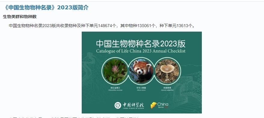 5月22日“國際生物多樣性日”當(dāng)天,中科院生物多樣性委員會(huì)在線發(fā)布了《中國生物物種名錄》2023版。據(jù)“物種2000中國節(jié)點(diǎn)”官網(wǎng)介紹,較2022版,2023版名錄新增10027個(gè)物種和354個(gè)種下單元。