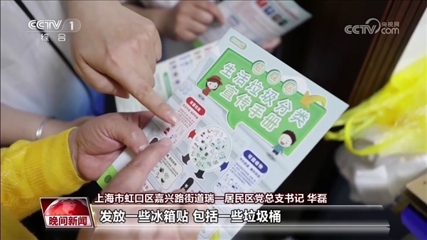 上海市虹口區(qū)嘉興路街道瑞一居民區(qū)黨總支書記 華磊:有的居民,他一開始就是不知道這個(gè)垃圾分類是怎么分類的。那么,我們就會(huì)挨家挨戶從黨員家庭開始做起,然后來(lái)帶頭。每個(gè)樓我們都有每個(gè)樓的志愿者來(lái)上門發(fā)放一些冰箱貼,包括一些垃圾桶,或者是小的一些蓋子等等的,來(lái)幫助大家。