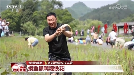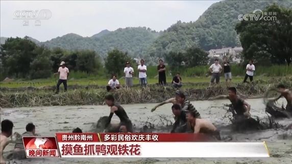 在貴州省長順縣白云山鎮(zhèn)中院村的荷花池里,當(dāng)?shù)厝罕姾陀慰?0多人一起抓魚,場面熱鬧非凡。與此同時,隔壁廣順鎮(zhèn)核子村的抓鴨子比賽也在熱鬧地舉行。人們顧不上泥漿和水,跟鴨子斗智斗勇,引得觀眾陣陣歡笑。