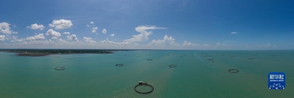 湛江徐聞西連鎮(zhèn)的“海上牧場”(5月27日攝,無人機全景照片)。   新華社記者 梁旭 攝