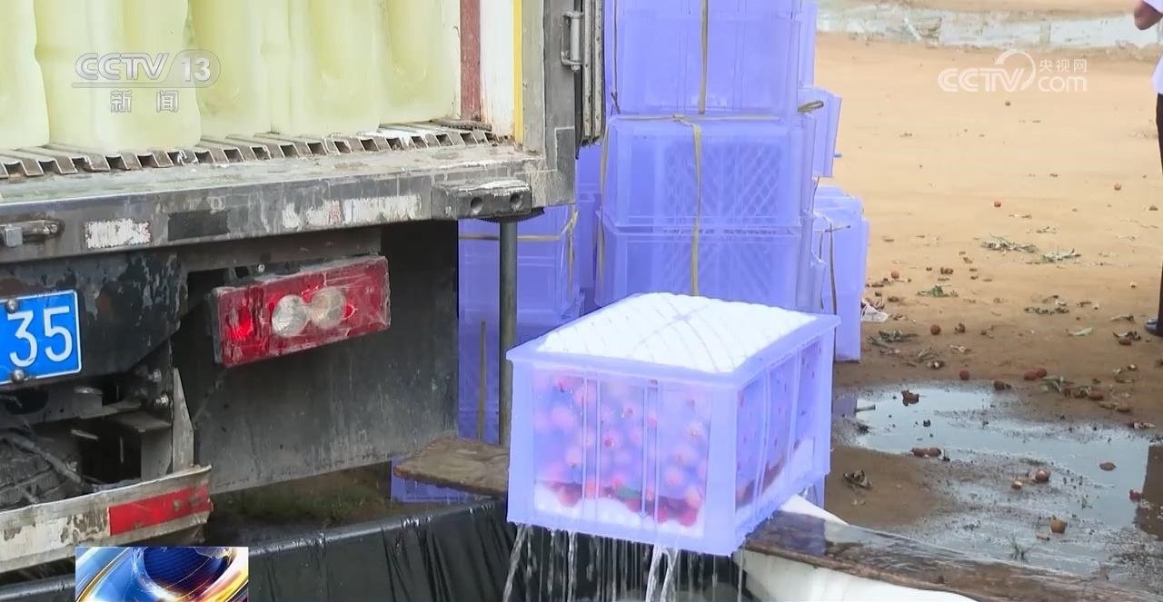 這邊采購(gòu)商前腳剛走,梁康連就來(lái)到荔枝分揀打包中心?,F(xiàn)在這里剛采摘下來(lái)的荔枝,分選打包后,要放到冰水里浸泡一個(gè)小時(shí)以上,再裝上冷鏈車物流運(yùn)輸保證荔枝的新鮮度。