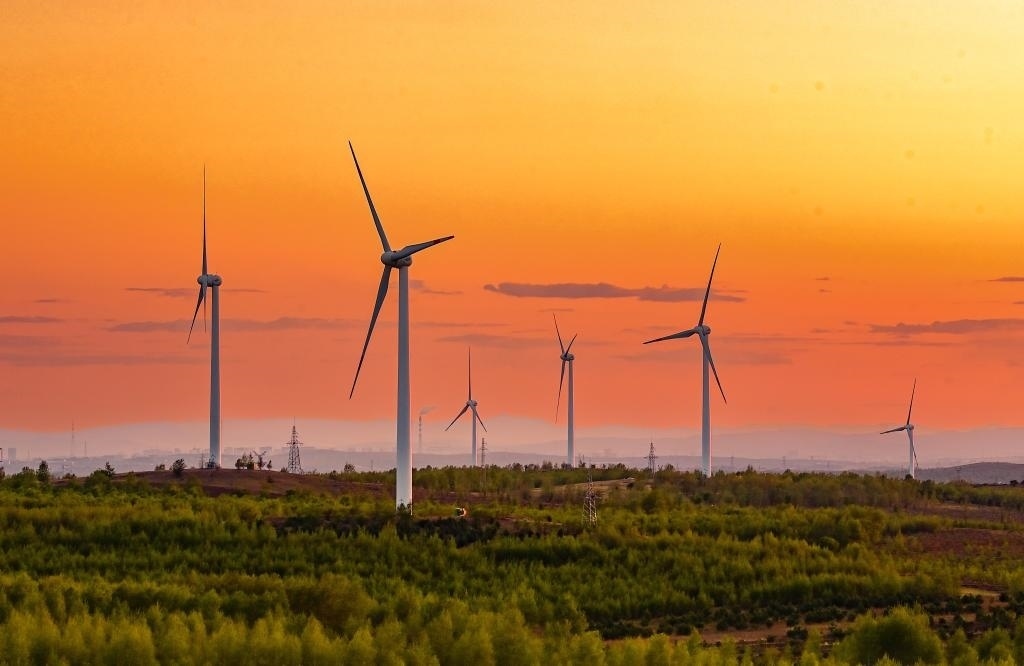 5月23日清晨拍攝的興安盟烏蘭浩特市呼和馬場風(fēng)力光伏發(fā)電場內(nèi)的風(fēng)機(jī)。新華社發(fā)(王正攝)