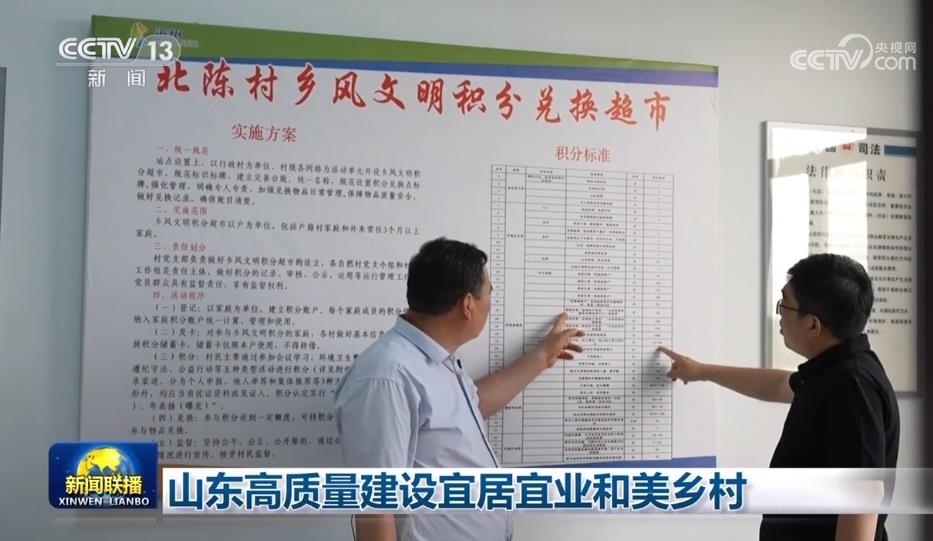 與此同時,山東還引入信用管理機制,有效提升群眾建設(shè)宜居宜業(yè)和美鄉(xiāng)村的積極性。在濱州市北陳村,每月都會有一次征信表彰活動,從村容村貌、村風建設(shè)、村務管理等方面,細化梳理了上百條加分和減分項,鎮(zhèn)村兩級超市、加油站等也被納入信用體系,村民可使用信用積分兌換商品。