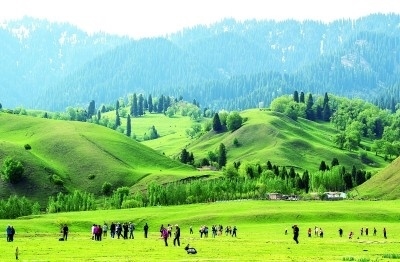 游客在新疆那拉提旅游風景區(qū)觀光。 新華社發(fā)