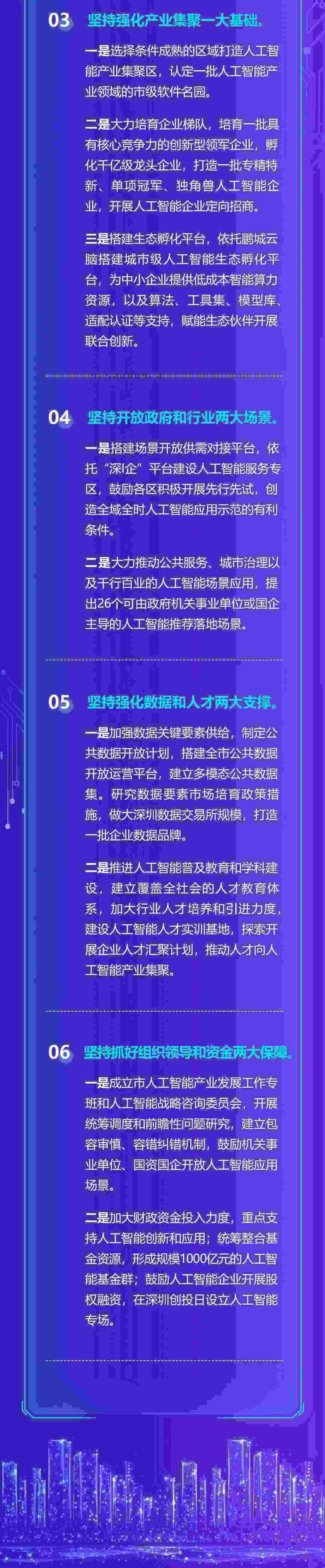 ?。ㄊ┘訌?qiáng)資金保障。加大財(cái)政資金投入力度,重點(diǎn)支持人工智能創(chuàng)新和應(yīng)用。發(fā)揮政府投資引導(dǎo)基金作用,統(tǒng)籌整合基金資源,形成規(guī)模1000億元的人工智能基金群。鼓勵(lì)人工智能企業(yè)在境內(nèi)外多層次資本市場(chǎng)開(kāi)展股權(quán)融資,支持風(fēng)投、創(chuàng)投機(jī)構(gòu)加強(qiáng)對(duì)人工智能初創(chuàng)企業(yè)的投資并購(gòu),在每月8日舉行的深圳創(chuàng)投日活動(dòng)中設(shè)立人工智能專(zhuān)場(chǎng)。(責(zé)任單位:市財(cái)政局、市發(fā)展改革委、市地方金融監(jiān)管局、市中小企業(yè)服務(wù)局等)