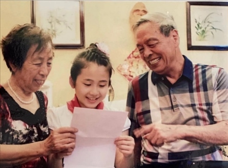 △浙江臺州市椒江區(qū)學生張婧怡與爺爺奶奶分享習近平總書記的回信。