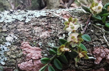 蘭科新物種——臥龍無柱蘭,于2021年11月發(fā)表于國際植物學(xué)期刊《北歐植物學(xué)》,是程躍紅和林紅強等人在轄區(qū)巡護監(jiān)測過程中發(fā)現(xiàn)的,以模式產(chǎn)地“臥龍”命名。該蘭科植物生長在海拔2700米左右的陡峭崖壁上,植株高約19-22厘米,花期7-8月,莖為呈紫紅色,開白色小花,中心為綠色,目前僅在大熊貓國家公園臥龍片區(qū)發(fā)現(xiàn)1個居群,約70株成熟個體,參照IUCN(世界自然保護聯(lián)盟)的標(biāo)準(zhǔn),臥龍無柱蘭被認定為“極度瀕危”等級的植物。