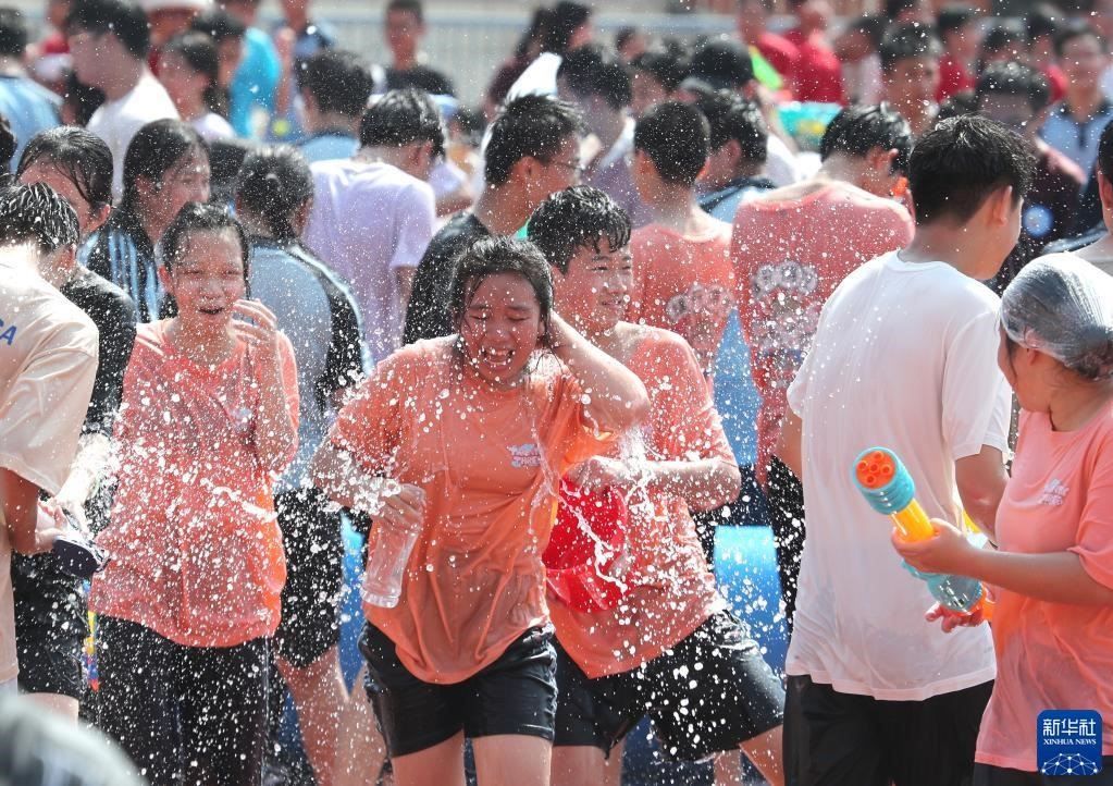 當(dāng)日,廣西南寧市第三中學(xué)初中部青秀校區(qū)組織1500多名初三學(xué)生,在校園舉行潑水活動,以獨(dú)特方式讓學(xué)生們減輕考前壓力。