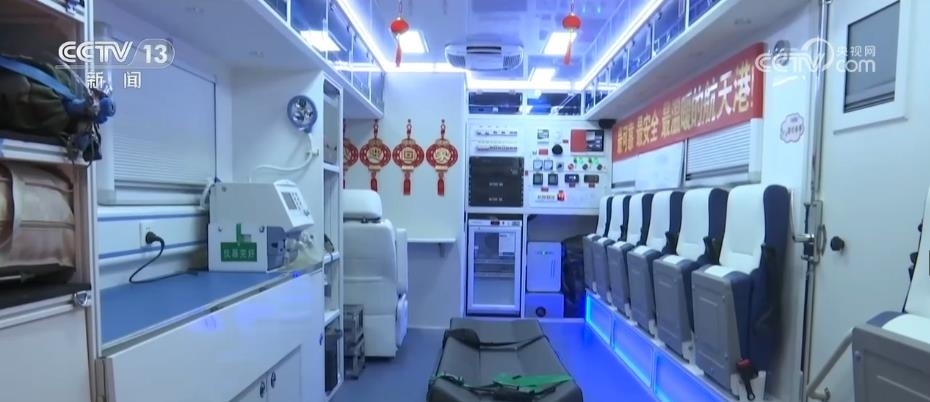 酒泉衛(wèi)星發(fā)射中心醫(yī)院航天員院外醫(yī)療救護隊隊員 喬陽:以前航天員返回地面后,醫(yī)監(jiān)醫(yī)保是在直升機上進行?,F(xiàn)在醫(yī)監(jiān)醫(yī)救車作為航天員返回地球后醫(yī)監(jiān)醫(yī)保的首選載體,空間大、獨立、舒適、方便。