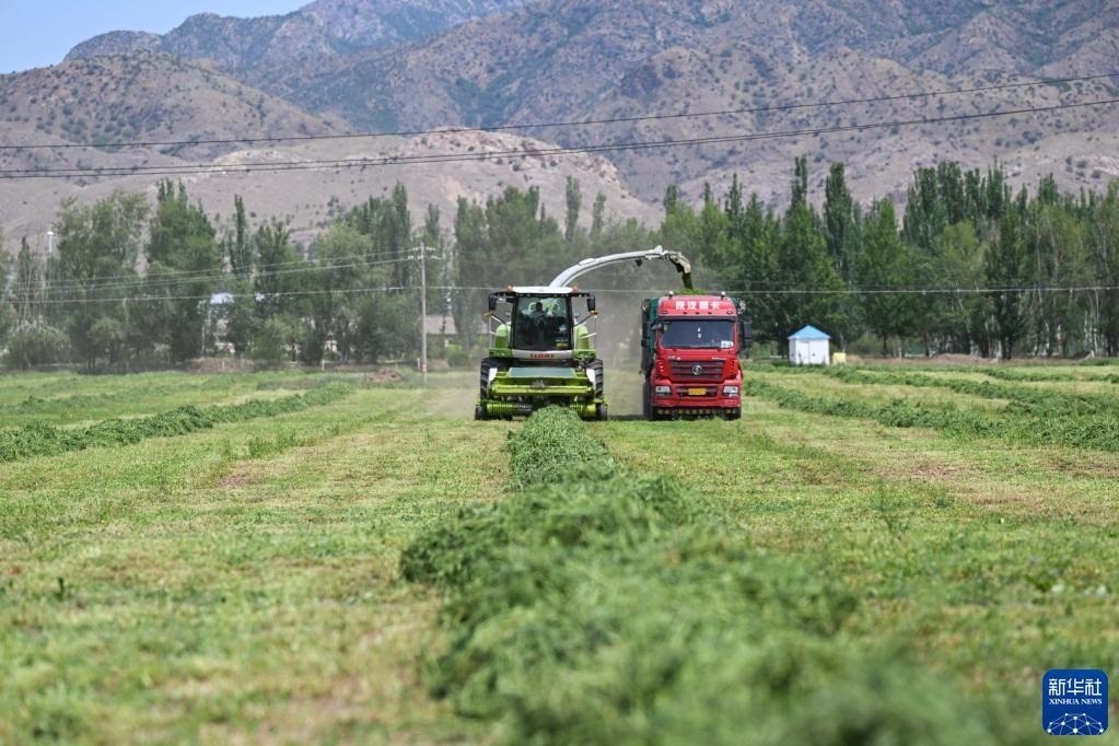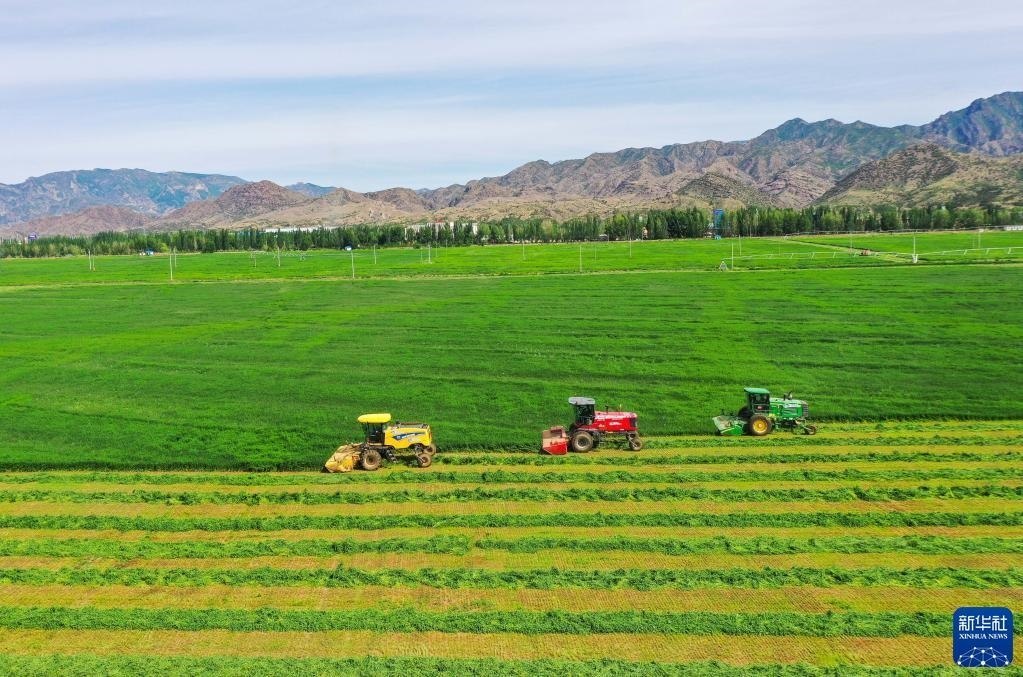 近日,內蒙古呼和浩特市土默特左旗國家現(xiàn)代農業(yè)示范區(qū)內,3000多畝優(yōu)質苜蓿迎來了第一茬收割,大型機械車輛在田間忙碌。近年來,呼和浩特市積極建設苜蓿產業(yè)化種植示范基地,增加優(yōu)質飼草種植面積,提升優(yōu)質飼草自給率,為奶業(yè)全產業(yè)鏈發(fā)展提供重要保障。   新華社記者劉磊攝