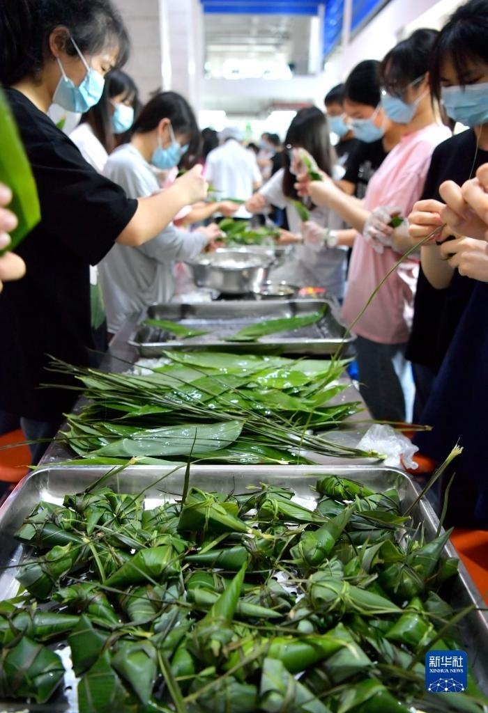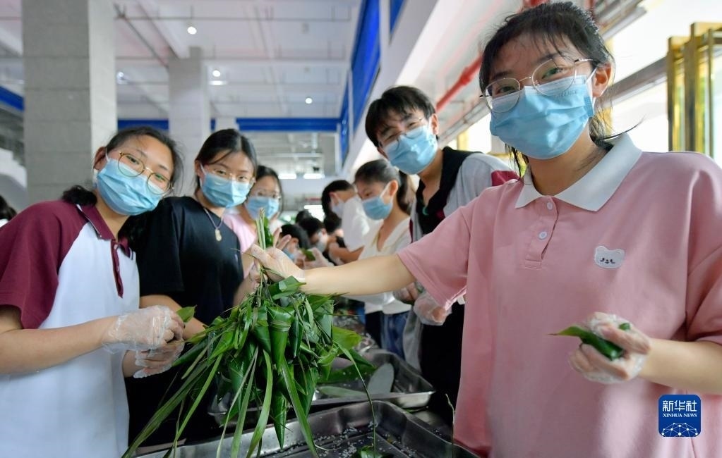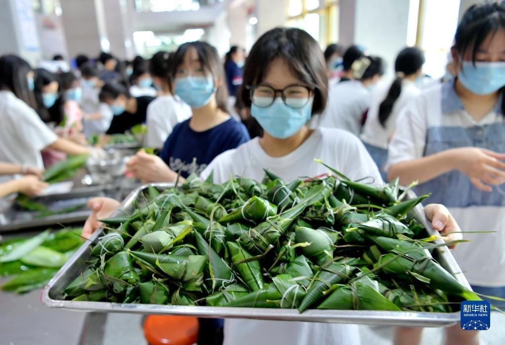 當(dāng)日,湖北省恩施土家族苗族自治州宣恩縣第一高級中學(xué)組織高三學(xué)生參加傳統(tǒng)手工包粽子比賽,讓即將踏入考場的學(xué)生在親自動手體驗(yàn)傳統(tǒng)文化的過程中舒緩心情、釋放壓力,以輕松的心態(tài)迎接高考。   新華社發(fā)(宋文攝)