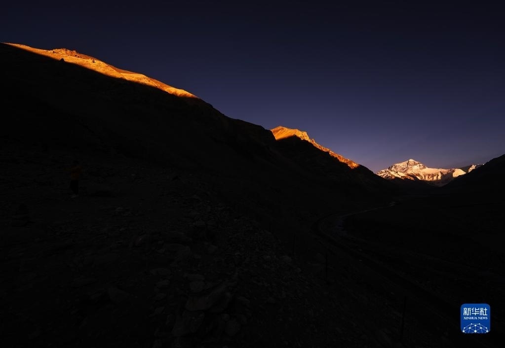 6月4日,最后一抹陽(yáng)光即將從珠峰頂上消逝。