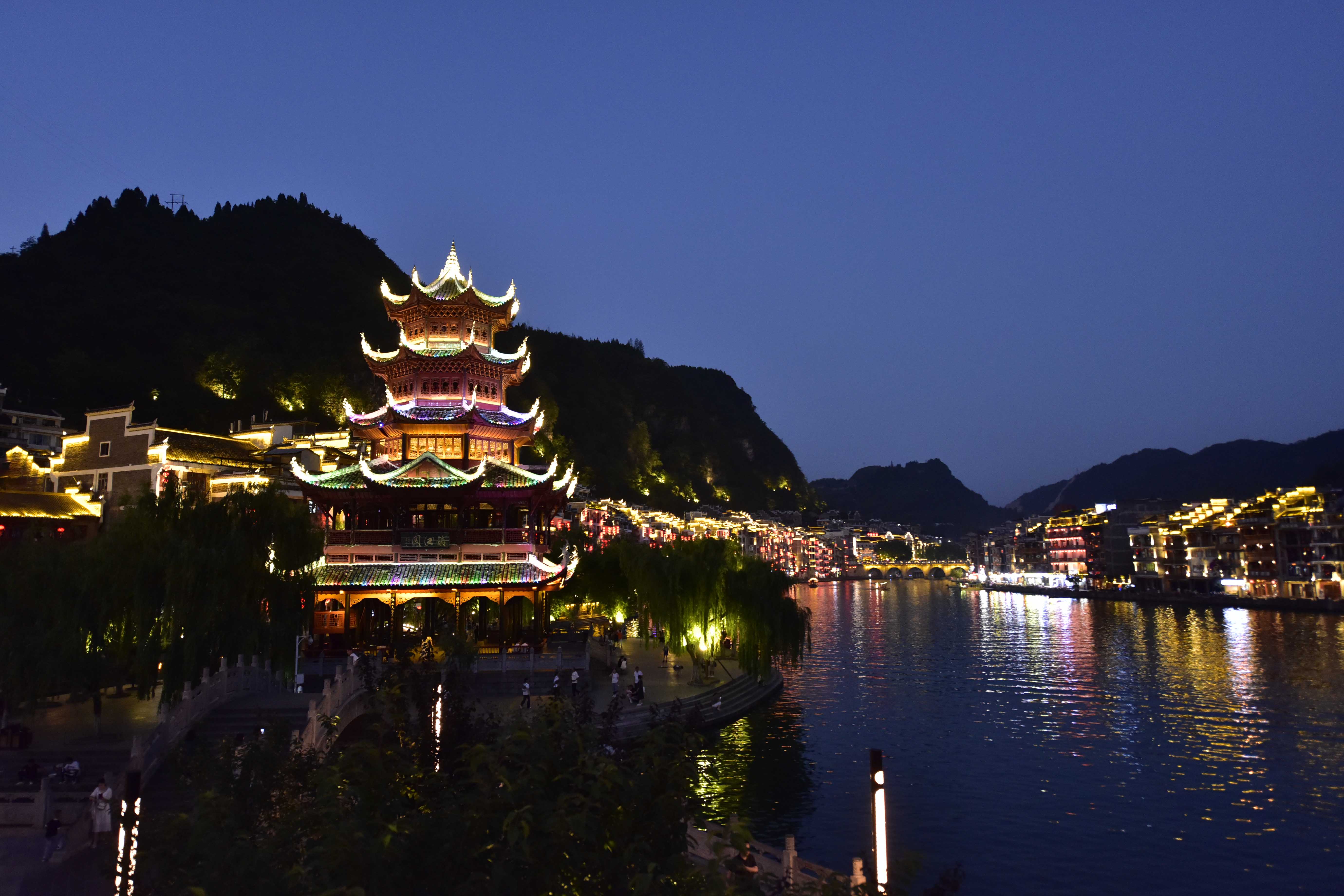 鎮(zhèn)遠(yuǎn)古城位于貴州省黔東南苗族自治州鎮(zhèn)遠(yuǎn)縣,據(jù)記載已有2280多年歷史。夜幕下的鎮(zhèn)遠(yuǎn)古城流光溢彩,璀璨奪目,宛如人間仙境。(寧堅(jiān) 吳昌軍)