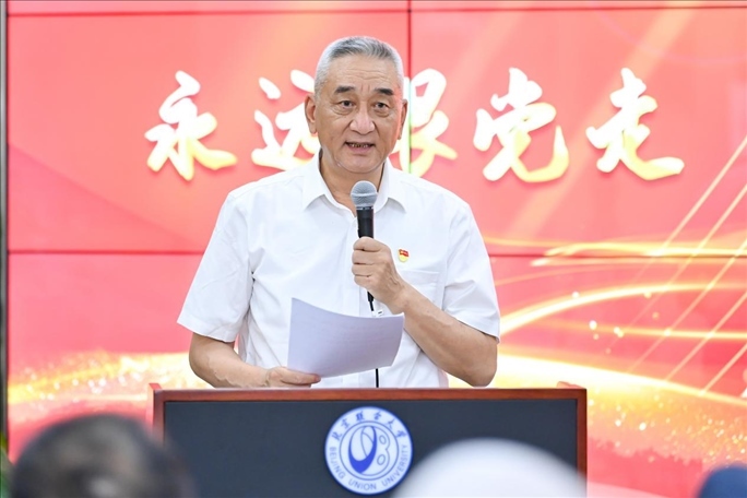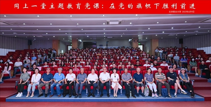 觀展后,參會嘉賓與管理學(xué)院200多名學(xué)生黨員及入黨積極分子在南院報(bào)告廳,共同開展“同上一堂主題教育專題黨課,在黨的旗幟下勝利前進(jìn)”黨課活動。此次講座由管理學(xué)院黨委書記張玲娜主持,由北京新四軍暨華中抗日根據(jù)地研究會原副會長劉華蘇主講。
