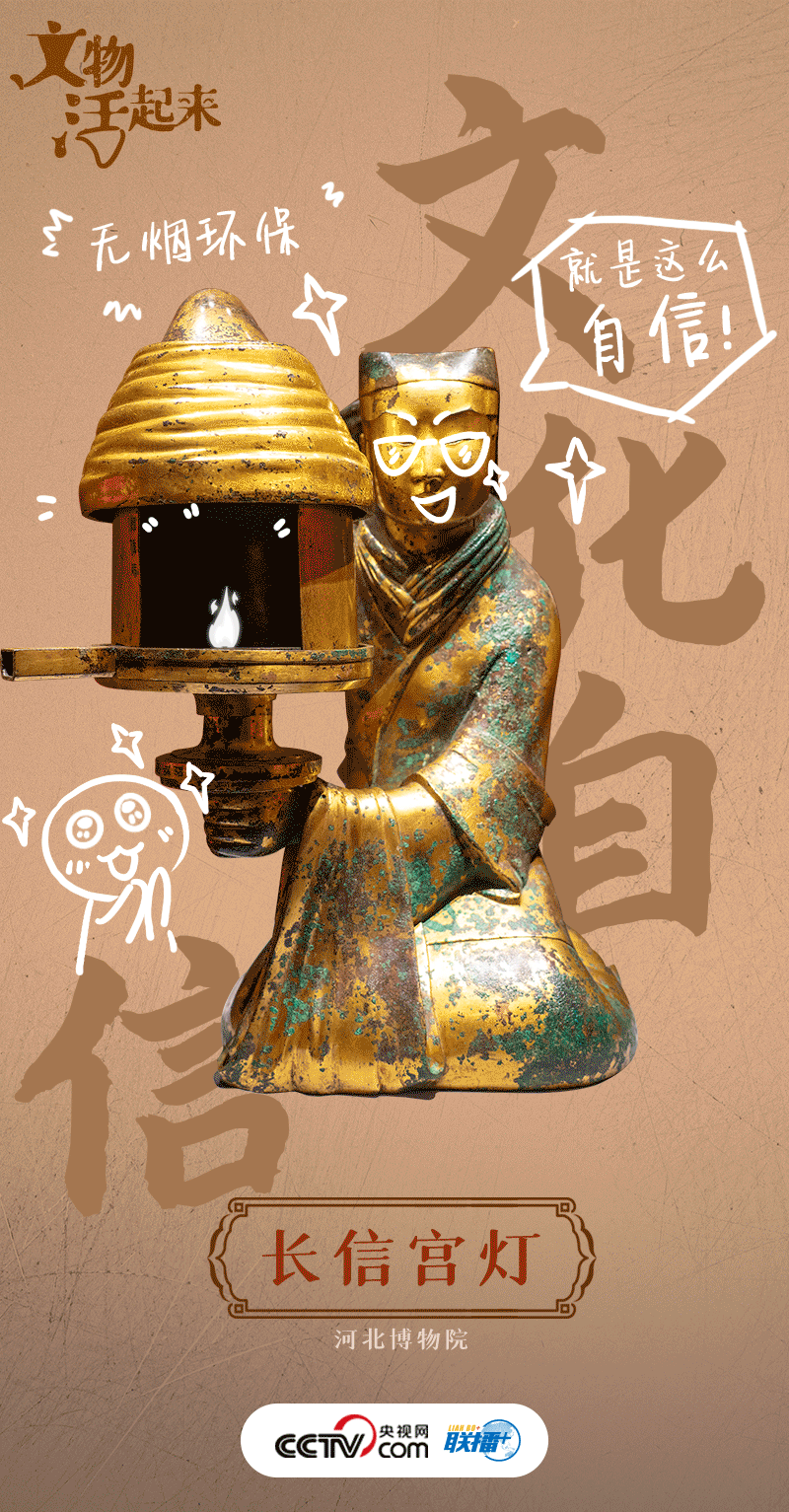 這盞燈來自西漢(公元前202年-公元8年),因燈身刻有“長信尚浴”的銘文而得名長信宮燈。長信宮燈設計巧妙,是目前所見唯一一件漢代人形銅燈,整件燈分為六個部分,每部分都可以簡單地拆卸重裝,宮女的袖管與身體連接形成排煙通道,環(huán)保設計理念獨特、超前,被譽為“中華第一燈”。
