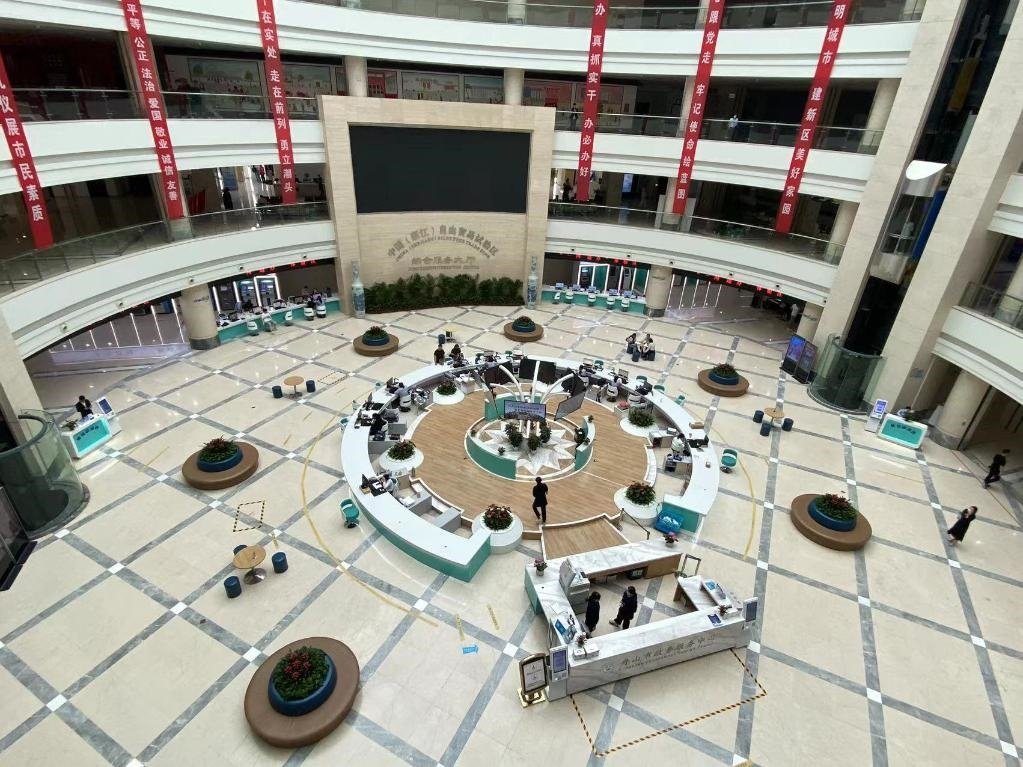 圖為浙江舟山的中國(浙江)自貿(mào)試驗區(qū)綜合服務(wù)大廳。新華社記者魏一駿 攝