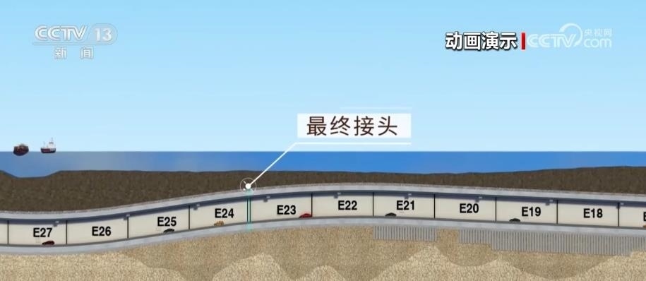 深中通道海底隧道長約6.8公里,其中,沉管段約5公里,由32個(gè)管節(jié)及1個(gè)最終接頭組成。此前,3年間已由東西兩側(cè)往中間依次沉放對接了31個(gè)管節(jié)。