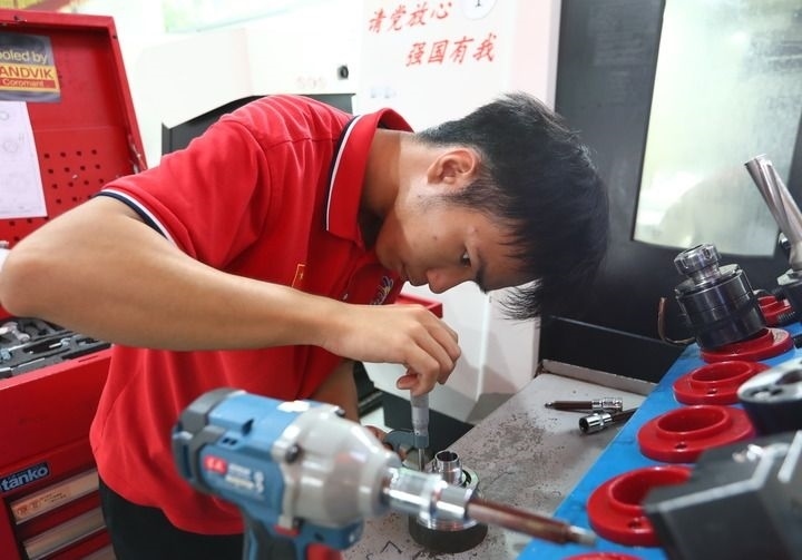 這個當(dāng)時只有15歲的小伙子初中畢業(yè)后進入順德一所中專學(xué)習(xí)數(shù)控加工,2017年,他在學(xué)校食堂的電視上看到了中國代表團在第44屆世界技能大賽中斬獲多枚金牌的畫面。“我激動得一宿沒睡,一個大膽的想法在我腦海出現(xiàn):我能不能代表國家參加世界技能大賽?”