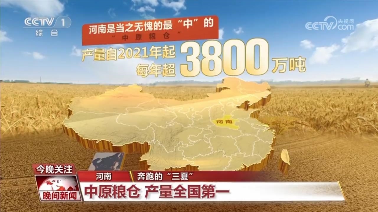 而說到這些大糧倉中的“C位”,河南是當(dāng)之無愧的最“中”的“中原糧倉”。河南小麥的產(chǎn)量自2021年起每年超3800萬噸,占中國的近1/4,位居全國第一。