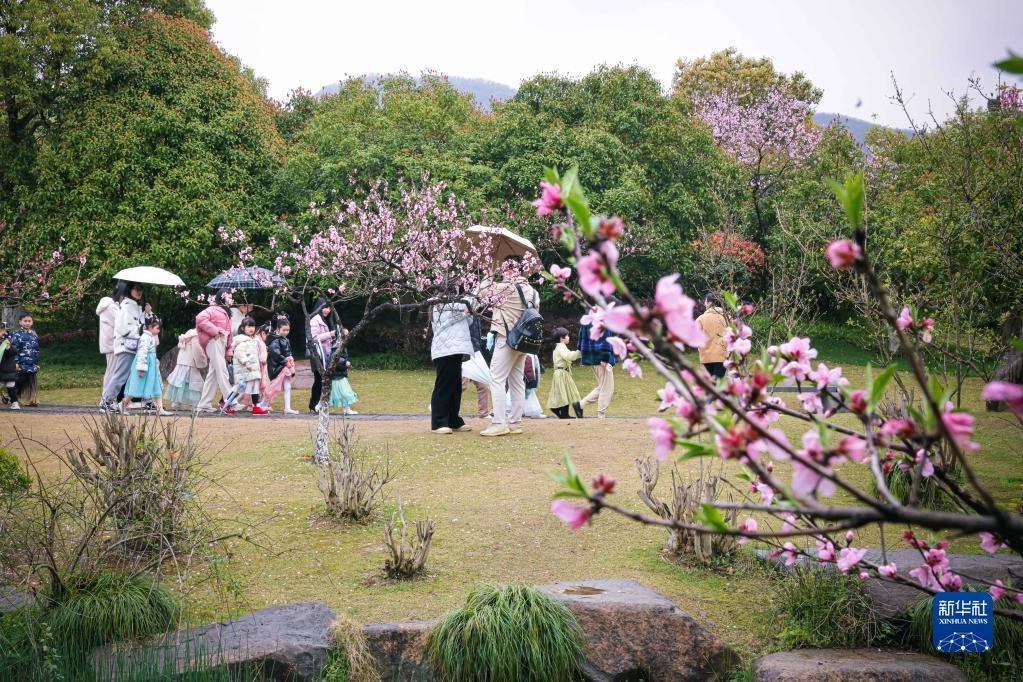 游客在浙江杭州丁蘭街道皋城村的桃園內(nèi)游園賞花(3月25日攝)。近年來(lái),杭州丁蘭街道皋城村在改善村容村貌、建設(shè)美麗鄉(xiāng)村的基礎(chǔ)上發(fā)展鄉(xiāng)村旅游業(yè),促進(jìn)鄉(xiāng)村文旅融合。新華社記者 江漢 攝