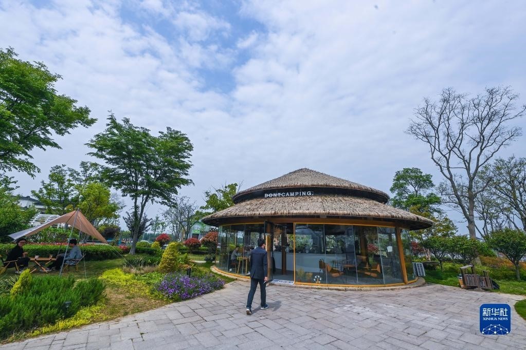 位于浙江湖州織里鎮(zhèn)伍浦村漁耕文化園的陶灣里鄉(xiāng)村咖啡店(4月11日攝)。近年來(lái),織里鎮(zhèn)依托當(dāng)?shù)孛利愢l(xiāng)村建設(shè)以及自然風(fēng)光,招引鄉(xiāng)賢返鄉(xiāng)創(chuàng)業(yè),依托閑置民宅、閑置土地建設(shè)特色咖啡店、花海景觀、特色民宿和農(nóng)家樂(lè)等,發(fā)展鄉(xiāng)村旅游經(jīng)濟(jì)。新華社記者 徐昱 攝