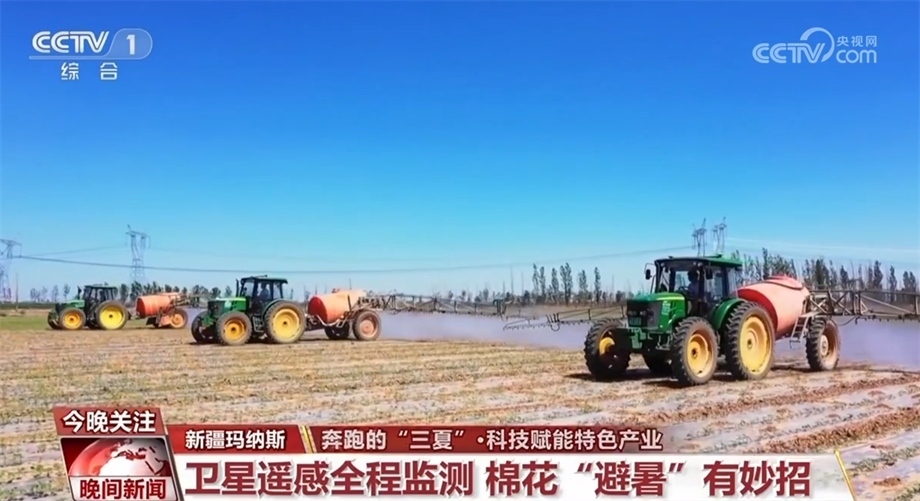 眼下,新疆昌吉瑪納斯縣的棉花正值現(xiàn)蕾期?,F(xiàn)蕾期指的是出現(xiàn)花蕾到開(kāi)花這一段時(shí)間,這個(gè)時(shí)候棉株生長(zhǎng)最快,然而持續(xù)的高溫給田間管理帶來(lái)考驗(yàn)。在瑪納斯縣樂(lè)土驛鎮(zhèn)的棉花田里,三臺(tái)裝有北斗導(dǎo)航系統(tǒng)的大馬力拖拉機(jī)正按照預(yù)先設(shè)定的線(xiàn)路進(jìn)行除草作業(yè)。這是農(nóng)技人員通過(guò)衛(wèi)星遙感棉花全程監(jiān)測(cè)技術(shù),幫種植戶(hù)制定的科學(xué)田管方案。