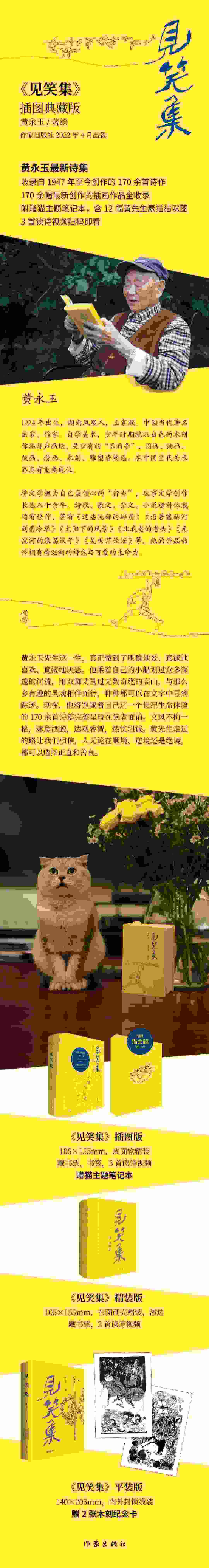 黃永玉先生是作家出版社多年的作者,很多重要作品經(jīng)由作家出版社與讀者朋友們見面,深受大家喜愛。黃先生多次說到過:“有朝一日告別世界的時(shí)候,我會(huì)說兩個(gè)滿意:一、有很多好心腸的朋友。二、自己是個(gè)勤奮的人?!?/p>
