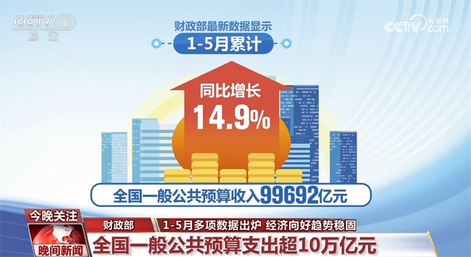 財政部最新數(shù)據(jù)顯示,1—5月累計,全國一般公共預(yù)算收入99692億元,同比增長14.9%;全國一般公共預(yù)算支出104821億元,同比增長5.8%。教育、科學(xué)技術(shù)、社會保障和就業(yè)、衛(wèi)生健康等支出,同比增長均超過5%。