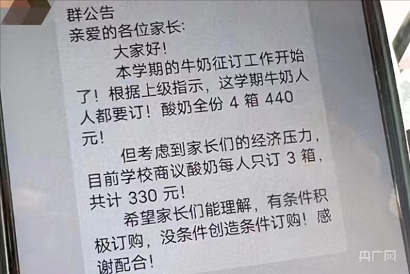 ·駐馬店正陽縣教育局發(fā)布關(guān)于正陽縣某學(xué)校涉嫌違規(guī)征訂學(xué)生飲用奶的調(diào)查情況通報:涉事班級解讀文件出現(xiàn)偏差。處理意見:立即暫停征訂工作,進(jìn)行整頓規(guī)范,對相關(guān)責(zé)任人員進(jìn)行調(diào)查。