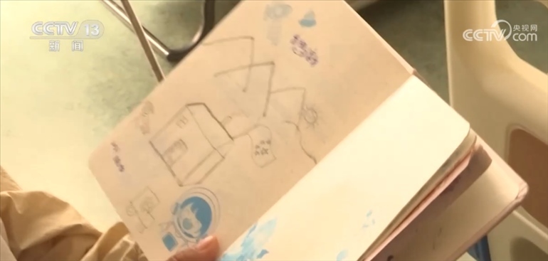 住院的時候,貢桑把對家鄉(xiāng)的思念融入了這幅畫中,遠(yuǎn)處的小房子是她的家,房子上掛著五星紅旗,她的妹妹和家人都是她心里最深的牽掛。