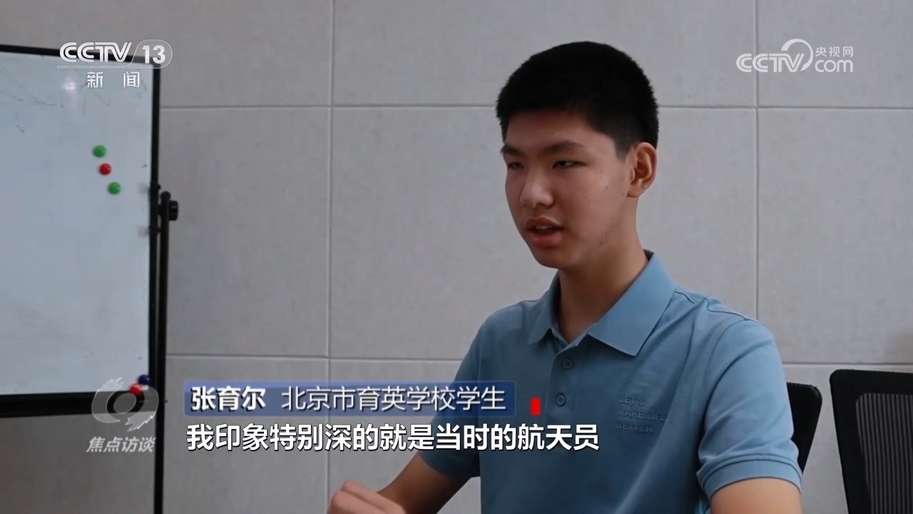 北京市育英學校學生張育爾:“我印象特別深的是當時航天員拿針筒把氣泡注射到水里,然后形成了一個類似于放大鏡的視覺效果,看到這個感覺很新鮮、很科幻,一開始是好奇心驅動了,后來就開始了解這方面的東西。”