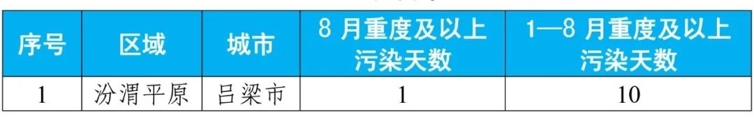 8月和1—8月重點(diǎn)區(qū)域出現(xiàn)重度及以上污染天的城市及具體天數(shù)詳見附表3。