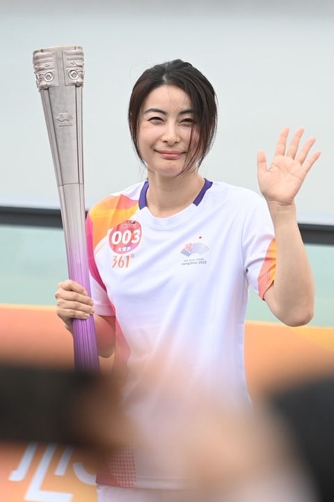 ↑火炬手鐘天使在火炬?zhèn)鬟f中。