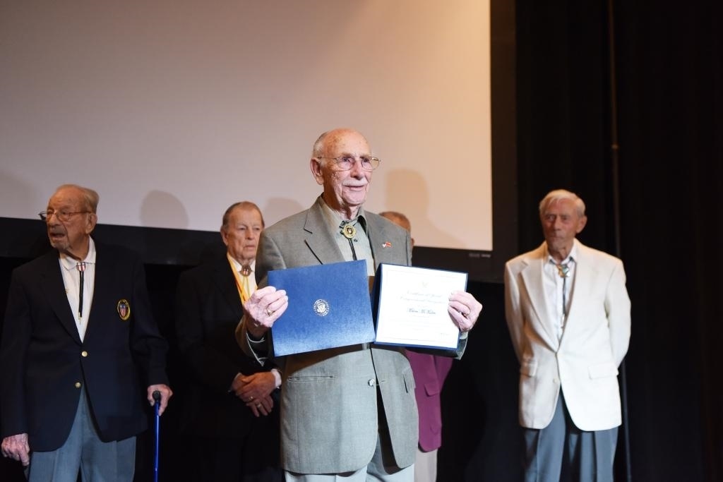 2019年5月11日,在美國拉斯維加斯舉行的中美二戰(zhàn)友誼暨飛虎隊歷史論壇上,飛虎隊老兵麥克馬倫(前)獲頒證書。