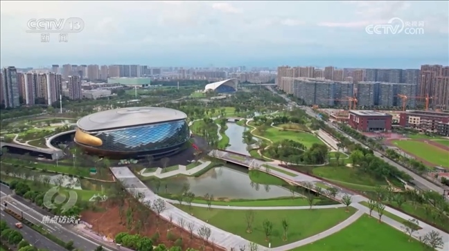 杭州亞運(yùn)會(huì)運(yùn)河體育公園指揮長(zhǎng)馮晶:“亞運(yùn)體育公園是按照綠色環(huán)保功能打造的,也是浙江省首座體育場(chǎng)館綠色三星級(jí)建筑。體育館的外立面采用陽極氧化鋁材料,在雨天有自清潔的功能,不用人工清洗外立面。透水混凝土在雨天有非常好的滲水功能,和我們的人工湖相結(jié)合,在晴天可以反哺草地,實(shí)現(xiàn)海綿城市的標(biāo)準(zhǔn)規(guī)范?!?/p>