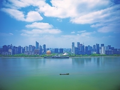 杭州錢江新城與錢塘江景色。新華社記者 江漢攝