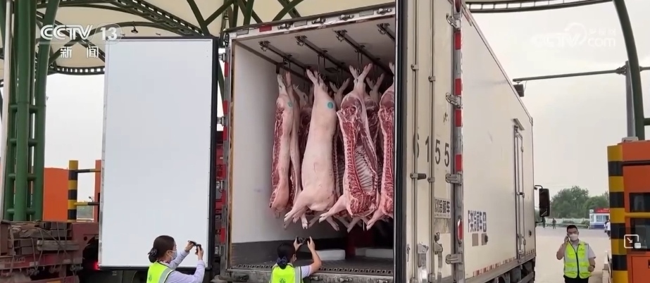 為了保障肉品質(zhì)量,在這家保供基地生豬屠宰后,會馬上進入預(yù)冷車間,預(yù)冷2小時之后再轉(zhuǎn)運到冷鏈車上,運輸全程制冷。另外,當(dāng)?shù)卣瓦\管部門也同步強化服務(wù),在檢疫、運輸、轉(zhuǎn)運等多個環(huán)節(jié)提供便利。