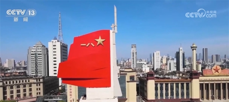 這里是江西省南昌市中心的八一廣場(chǎng),八一南昌起義紀(jì)念塔巍然矗立,塔頂有一面用棗紅色磨光花崗石做成的八一軍旗,形象地表現(xiàn)南昌起義開始中國(guó)共產(chǎn)黨獨(dú)立領(lǐng)導(dǎo)武裝斗爭(zhēng)、人民軍隊(duì)從此光榮誕生這一偉大主題。“南昌城頭的槍聲”如“劃破夜空的一道閃電”,從此軍旗獵獵向前進(jìn)。