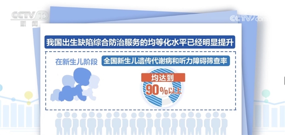 2009年以來(lái),累計(jì)為1.3億名農(nóng)村生育婦女補(bǔ)服葉酸;全國(guó)婚檢率從2011年的41.9%提高至2021年的70.9%;全國(guó)產(chǎn)前篩查率從2011年的22.7%提高至2021年的85.7%;全國(guó)新生兒遺傳代謝病和聽(tīng)力障礙篩查率均達(dá)到90%以上。建立起出生缺陷三級(jí)防治體系。