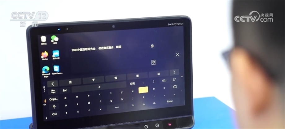 這位技術(shù)人員正在演示“眼動(dòng)輸入法”,通過(guò)眼球轉(zhuǎn)動(dòng)和凝視來(lái)操作電腦完成輸入。這種眼球追蹤技術(shù)通過(guò)眼控儀上配備的多組近紅外光源,借助精密算法得到目光注視點(diǎn)坐標(biāo)位置,從而讓電腦知道眼睛在看哪里,實(shí)現(xiàn)用目光操作電腦,取代傳統(tǒng)的鍵盤(pán)鼠標(biāo)。