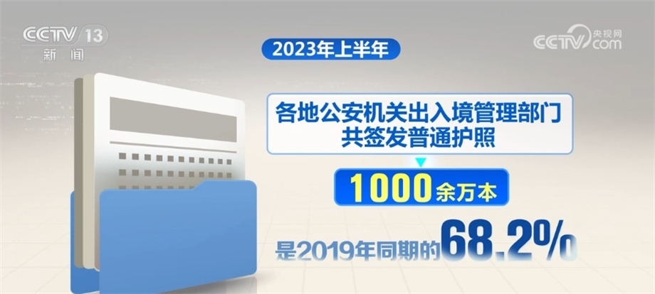 今年上半年,各地公安機(jī)關(guān)出入境管理部門共簽發(fā)普通護(hù)照1000余萬本,是2019年同期的68.2%;簽發(fā)往來港澳臺(tái)出入境證件簽注4279.8萬本(枚),是2019年同期的96.5%;為在華外國人辦理停留居留證件37.9萬人次,是2019年同期的86.7%。