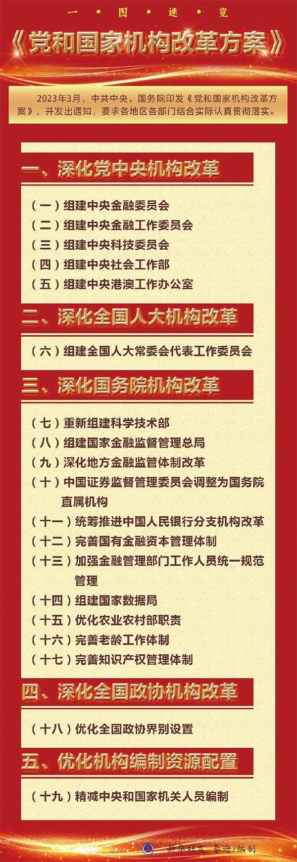 “這次機(jī)構(gòu)改革,是在黨的十九屆三中全會(huì)以來(lái)黨和國(guó)家機(jī)構(gòu)職能實(shí)現(xiàn)系統(tǒng)性、整體性重構(gòu)基礎(chǔ)上推進(jìn)的,同時(shí)也是在黨的二十大對(duì)今后5年乃至更長(zhǎng)時(shí)期黨和國(guó)家事業(yè)發(fā)展作出戰(zhàn)略部署的背景下研究謀劃的?!?/p>